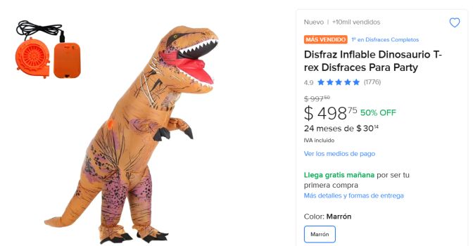 ¡Sé el alma de la fiesta con el Disfraz Inflable de Dinosaurio para Adultos! 🦖🎉 Fácil de usar con encendido/apagado, este traje grande y llamativo atraerá todas las miradas y elogios. Hecho de poliéster 100% duradero, ligero e impermeable con costuras reforzadas, garantiza diversión cómoda y segura por mucho tiempo. ¡Conviértete en el rey del jurásico en cualquier celebración! 👑✨